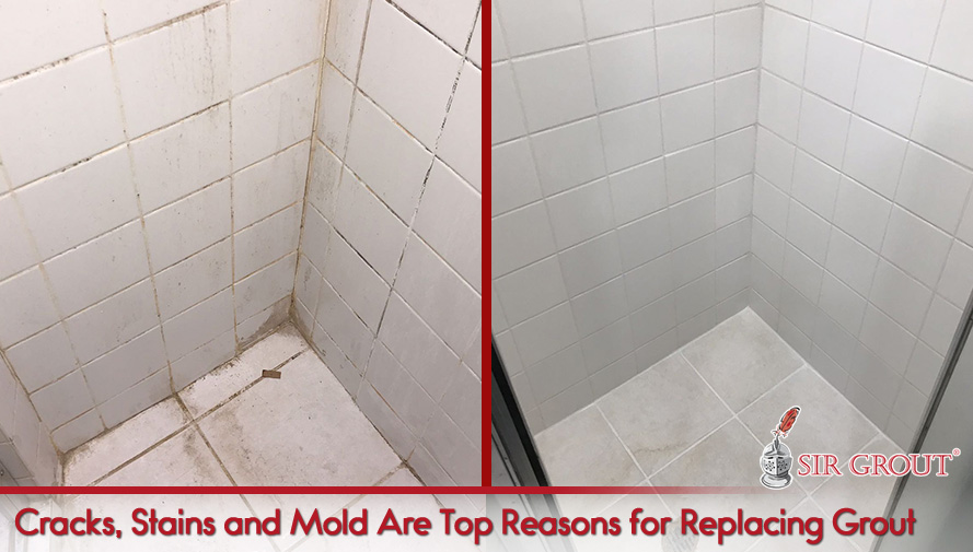 Cracks, staining, and black mold are some of the signs that your old grout may need to be replaced, but with skilled professionals it can often be renewed. However, grout that is beginning to crumble, break or wear down is more likely in need to replacement.The more of these issues you have going on, the more likely it is you'll have to completely replace your old grout. It may still be possible to have the grout repaired in spots if these issues aren't extensive, but complete grout replacement is a good decision if these issues are prevalent.