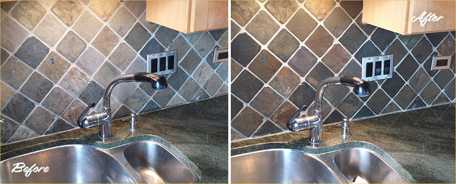 Slate is a beautiful natural stone that can be used for different indoor and outdoor surfaces. It is one of the most desirable stones due to its durability – there is less maintenance required to make it look good in comparison to most stones. It will enhance the look of any space and raise the value of a property. With its unique appearance and lovely shades of black, gray, and charcoal, it makes any surface look attractive. However, not everything is perfect with slate. As with many stones, if not properly taken care of, colors will fade and lose their brightness, as you can see in the images of a slate backsplash below.